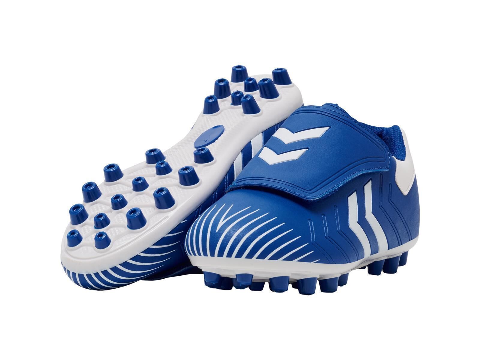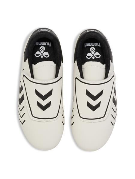 Multifunktionaler Fußballschuh. Ein weiches PU-Obermaterial mit durchgehendem Klettverschluss, weichem Mesh-Futter und gestanzter Innensohle. Prägungs- und Druckdetails auf dem Obermaterial. Inspiriert von der stolzen Geschichte der Fußballschuhe von hummel.